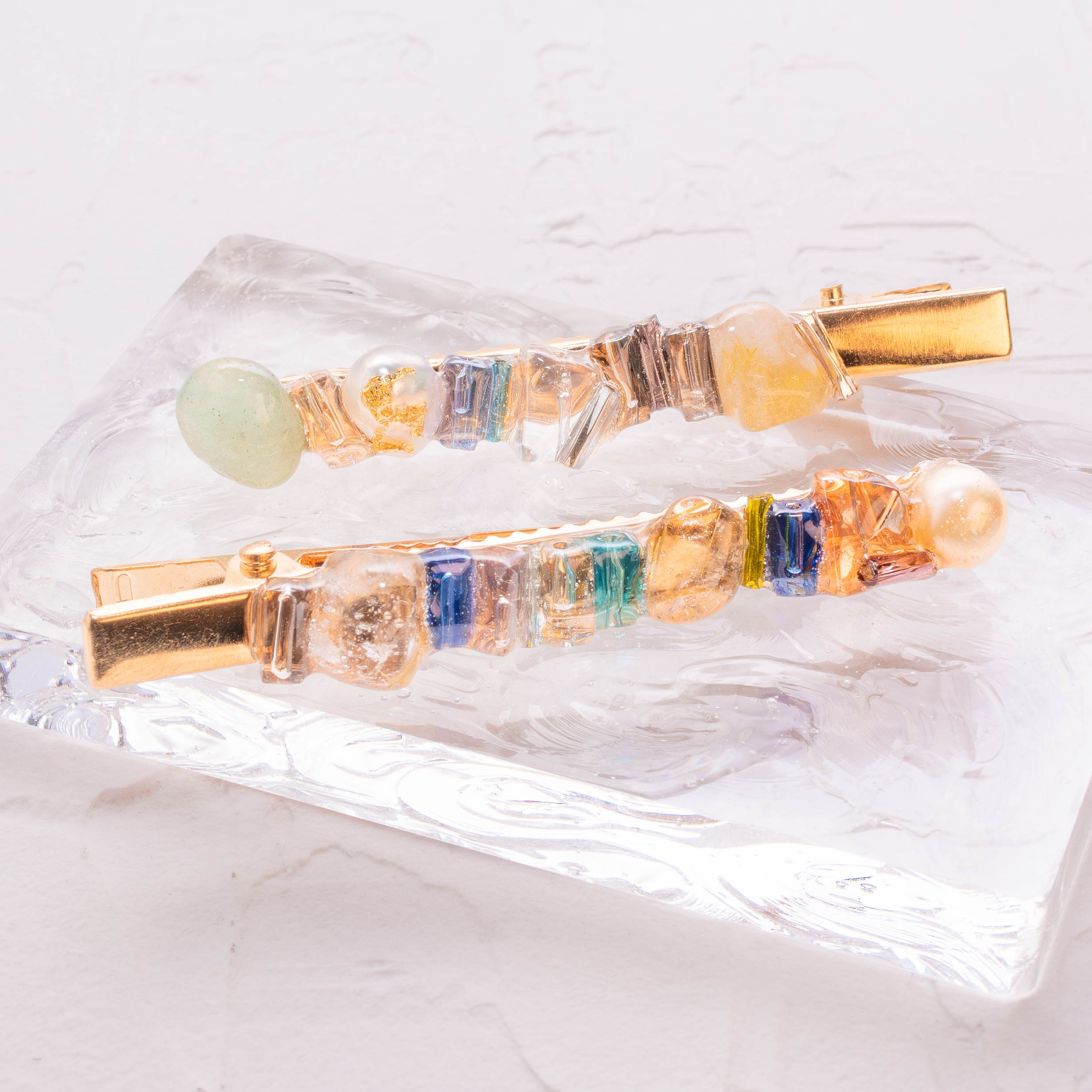 天然石とパールのクリップ