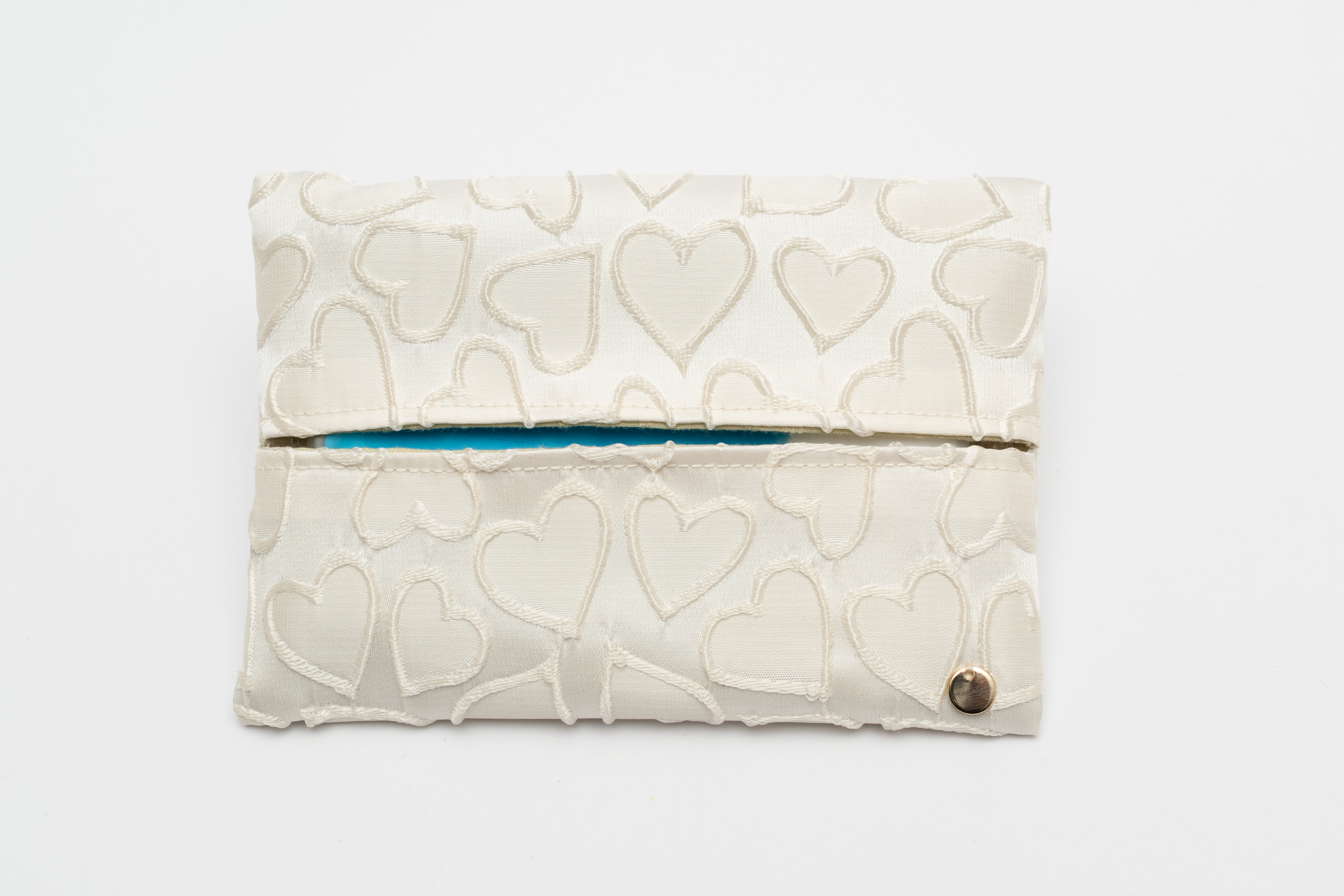 ナチュラルで柔らかなワッフル調の生地に、ワンちゃんの刺繍がちょこんとあしらわれたmaamade様の小物入れ(刺繍dog)です。つぶらな瞳で見つめるようなワンちゃんの表情がたまらなく愛らしく、手に取るたびに心がほっこりと癒やされます。内側はストライプ柄を合わせ、可愛らしさの中に凛とした大人っぽさをプラス。反対側には小さな黒いハートの刺繍も施されており、どこから見ても作家さんのこだわりが感じられる、温もりあふれる布小物です。