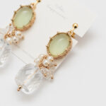 上質なミルキーなニュアンスオーバルは、天然石のような奥深い色合いで肌に優しく馴染み、繊細なミル打ちのゴールド装飾がアンティーク調の気品を添えます。その下で優しく瞬くのは、一つひとつ表情の異なるパール。さらに、光を捉えてきらめく多面カットのクリスタルビーズが、顔周りに透明感あふれる華やかさを届けます。