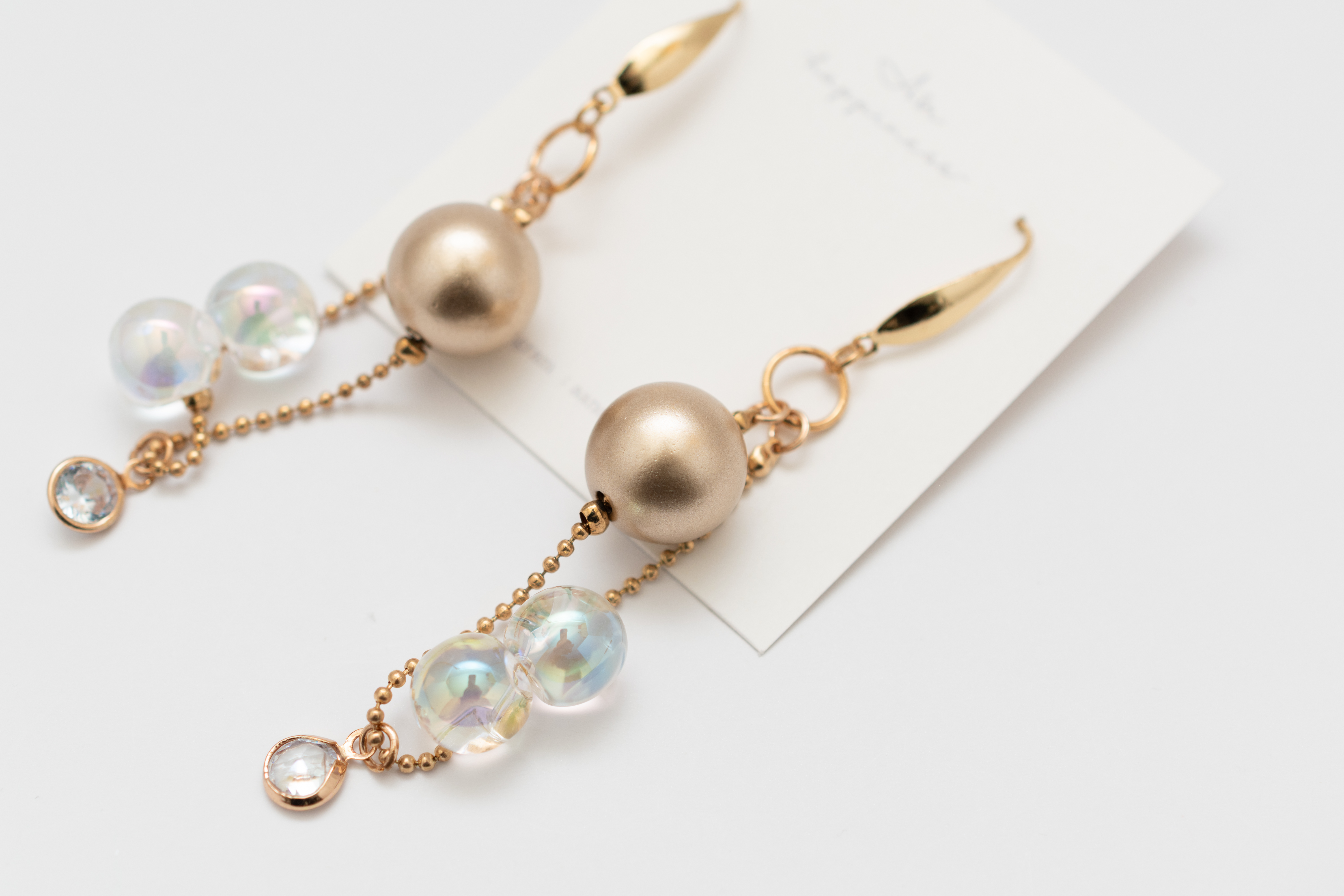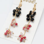 ゴールドチェーンが優雅に下がり、ファセットカットされたクリアとレッドのビーズが、まるで朝露に濡れたベリーがたわわに実るように、耳元で優しく揺らめきます。シンプルスタイルに「高見え」効果を、特別な日には周りの視線を惹きつける華やかさを添え、あなたの日常に彩りをもたらします。