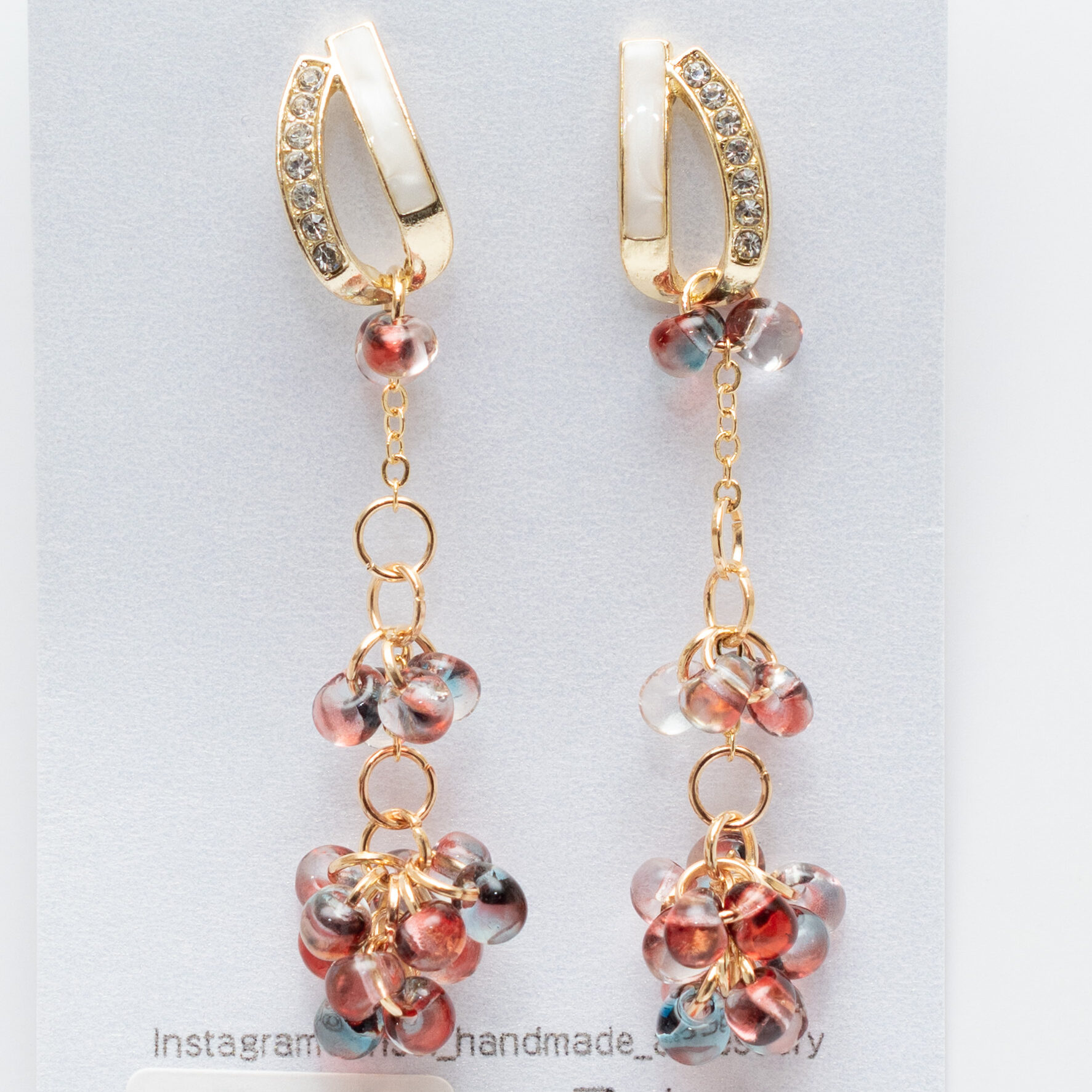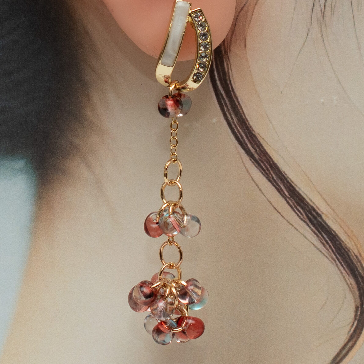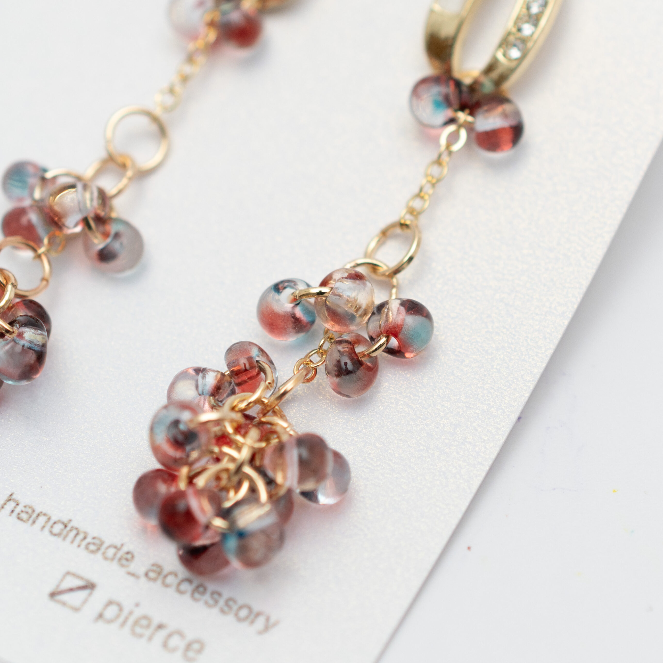 透明感あふれる小粒のガラスビーズは、まるで光を纏った葡萄の房のようにたわわに集い、耳元で優しく揺れ動きます。