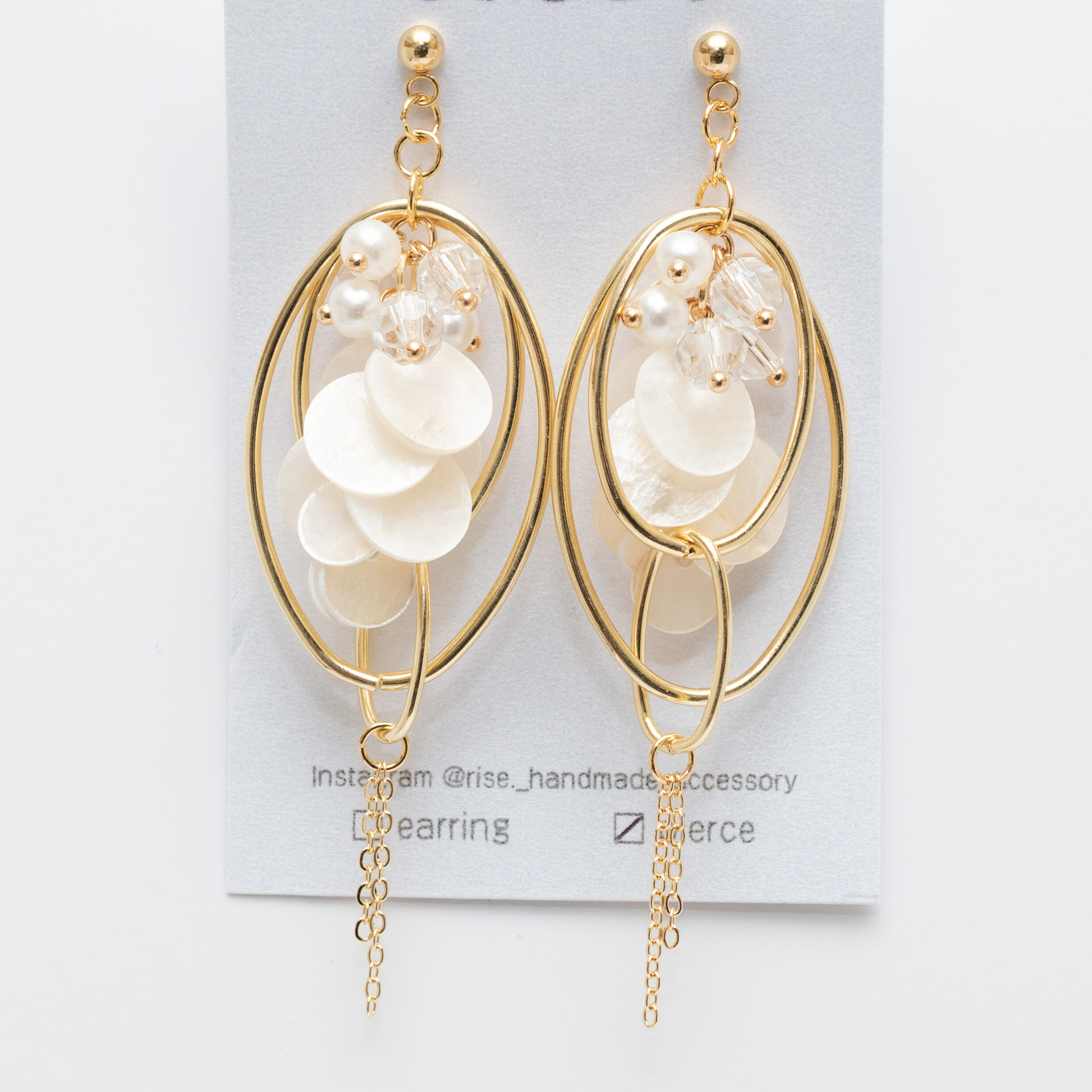 多面カットガラスとパールのじゃらピアス