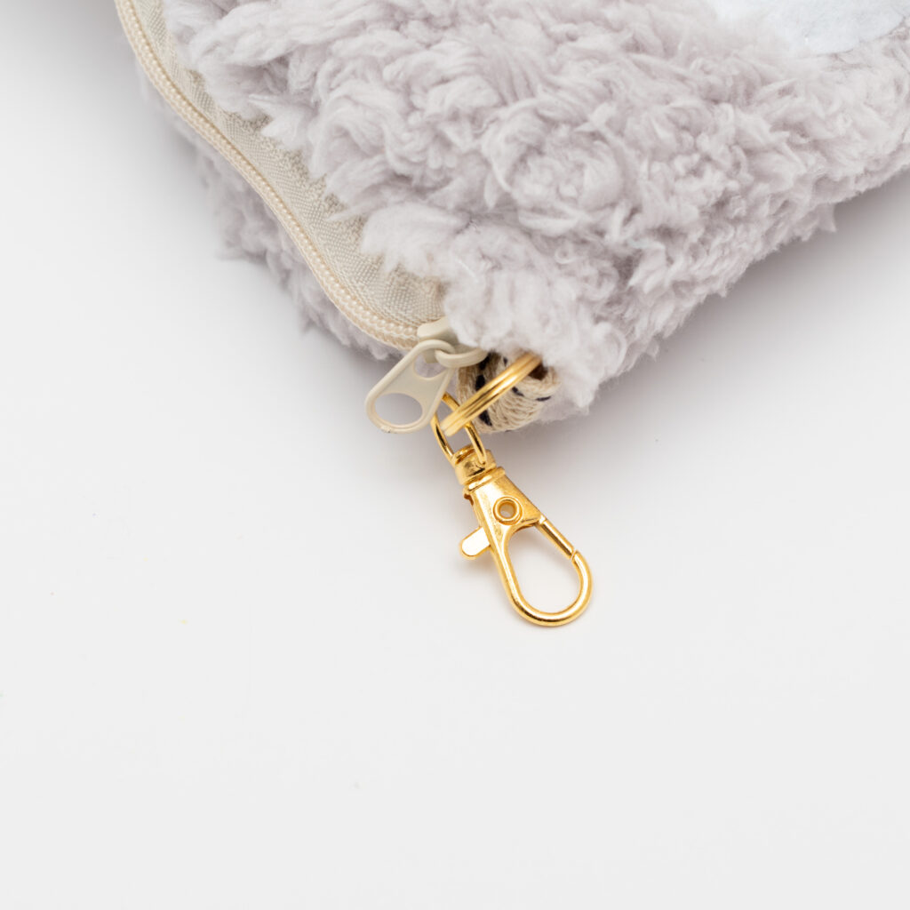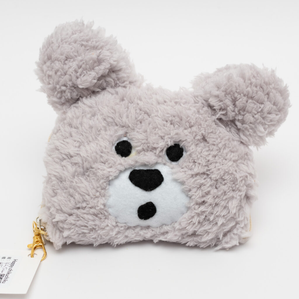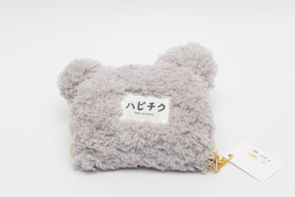 「ブルートートのエコバッグ&もこもこくまポーチ付き(ゴールド金具)」は、発色の良いブルーのトート型バッグと、ふわふわグレーのくま顔ポーチがセットになった作品です。ブルー×グレーの配色で甘すぎず、大人の方にも取り入れやすい可愛さに仕上がっています。