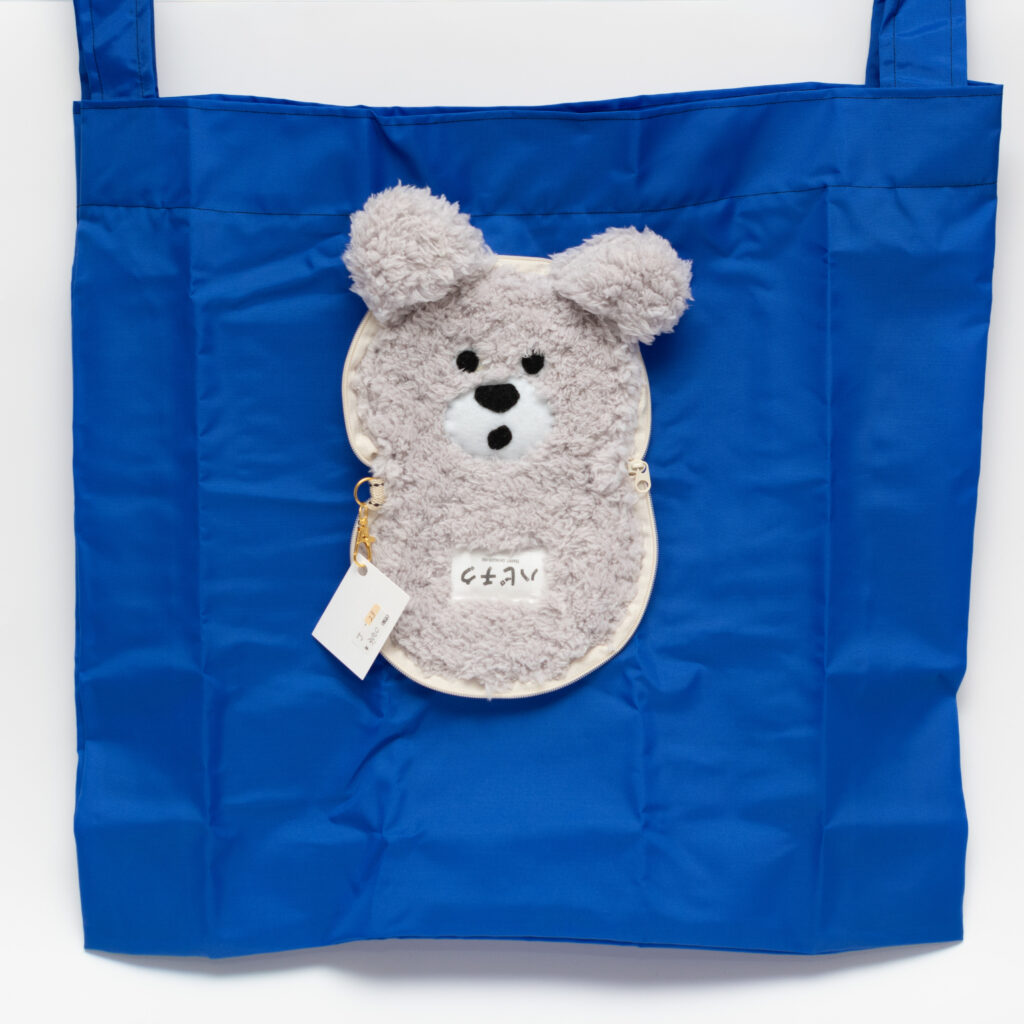 無難になりがちなエコバッグを、持つたび楽しく。鮮やかなブルーのトート型エコバッグに、もこもこ“くま顔ポーチ”が付いたセットです。小物の定位置づくりにも役立ち、買い物やお出かけのサブバッグがぐっと快適になります。