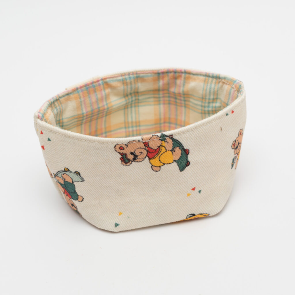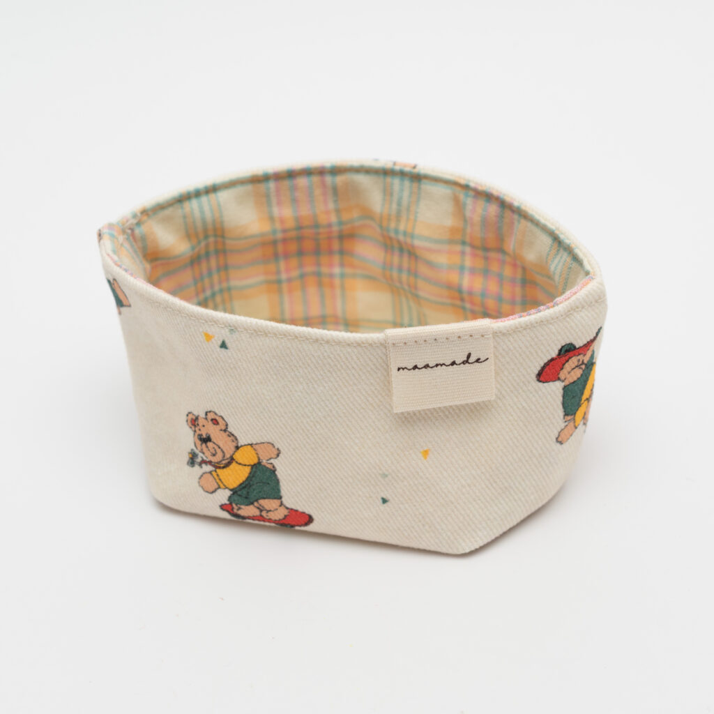 ヴィンテージライクな表情のクマたちが、アクティブにスケートボードを楽しむ姿が描かれたmaamade様の小物入れ(bearホワイト)です。生成り色の柔らかな斜文織りの生地に、どこか懐かしくポップなイラストが映える、大人の遊び心をくすぐるデザインが魅力です。内側には明るいパステルカラーのチェック柄を合わせ、中をのぞくたびにパッと気分が明るくなるような仕上がり。布製ならではの温かな手触りと、作家さんのこだわりが細部まで宿ったハンドメイドの逸品です。