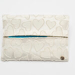 光沢感のある上品なホワイト生地に、同色のハート刺繍が可憐に浮かび上がるポケットティッシュケースです。真っ白なキャンバスに描かれたような立体的なハート模様が、清楚で華やかな印象を与えてくれます。右下に配されたゴールドのロゴチャーム(GDタグ)は、ホワイトとの相性が抜群で、大人の女性にふさわしい上質な華やぎを演出。持っているだけで背筋が少し伸びるような、清潔感と品格を兼ね備えた一品です。