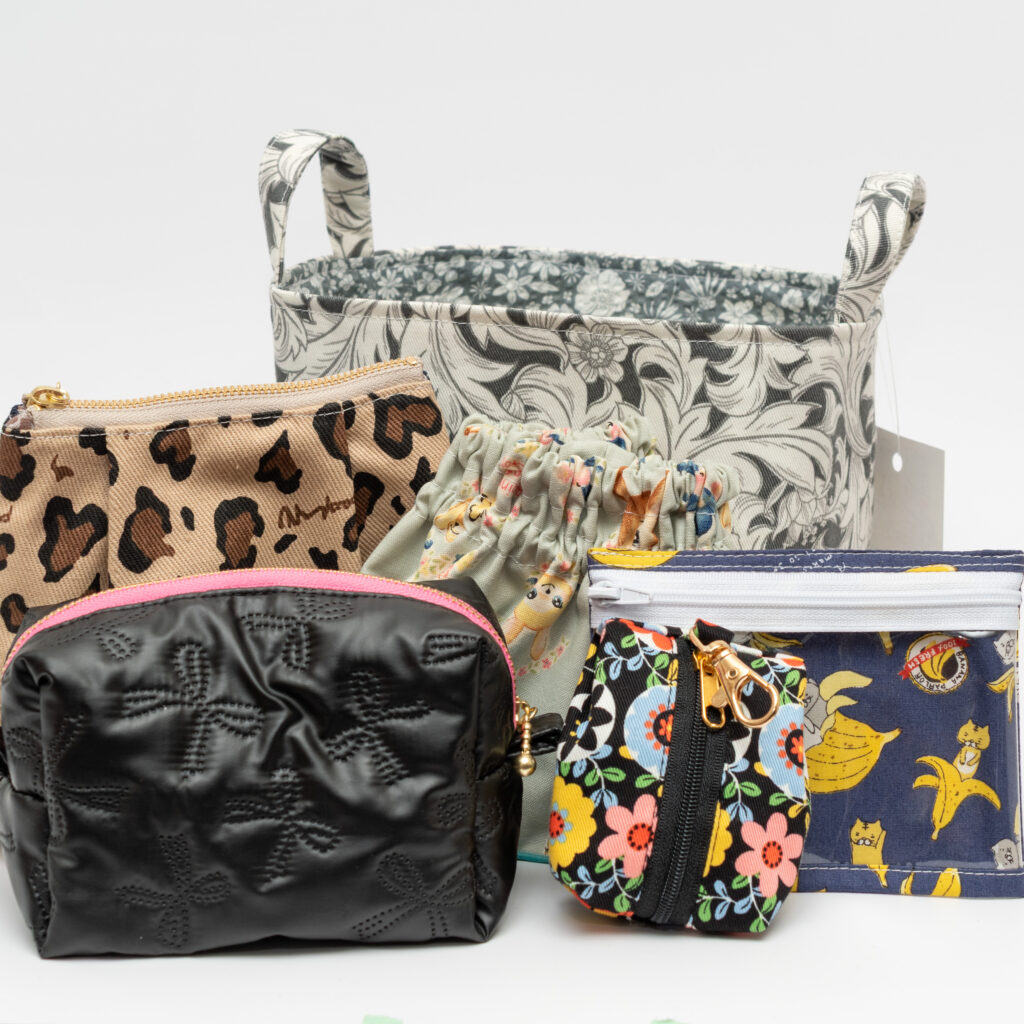 しっかりとした厚手の布地で自立し、型崩れしにくいのも魅力。リモコン、眼鏡、コスメ、おもちゃなど、散らばりがちな日常の小物を優しく包み込み、スマートに整頓します。