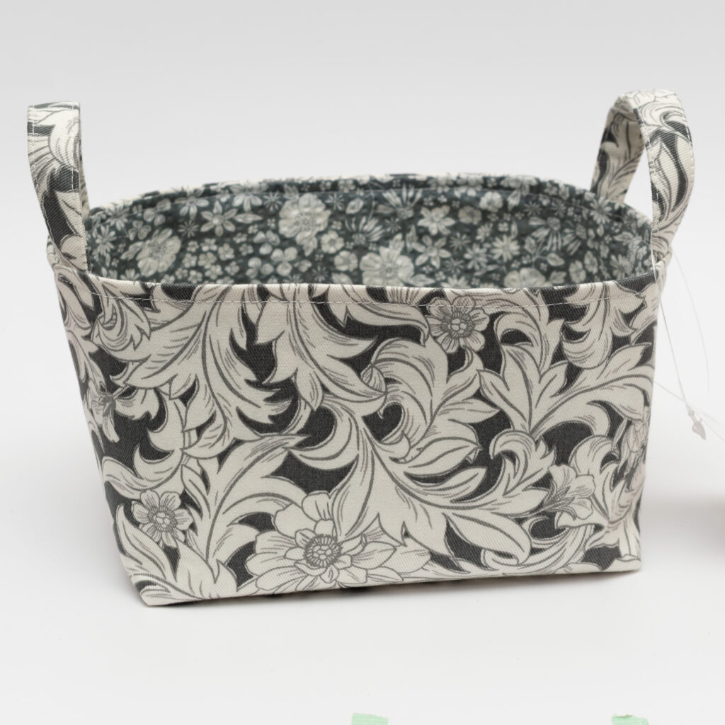 美しく、心ときめく収納を探しているあなたへ、ひめもも様が贈る【アカンサス&小花】リバーシブル布製収納バスケットのご紹介です。